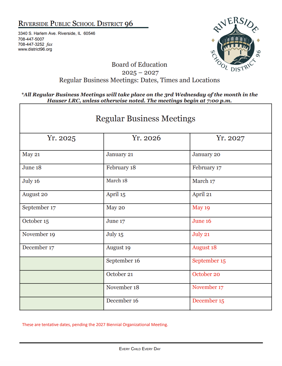 B.O.E. Regular Business Meetings 2025-2027